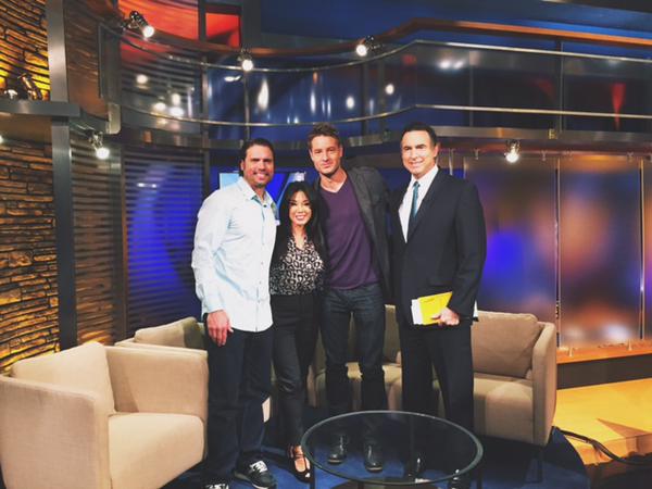 Photo courtesy of @YandR_CBS via Twitter on Feb 9, 2015 with @RickGarciaNews @JoshuaMorrowYR and @SharonTay888 on the CBS2 This Morning Show